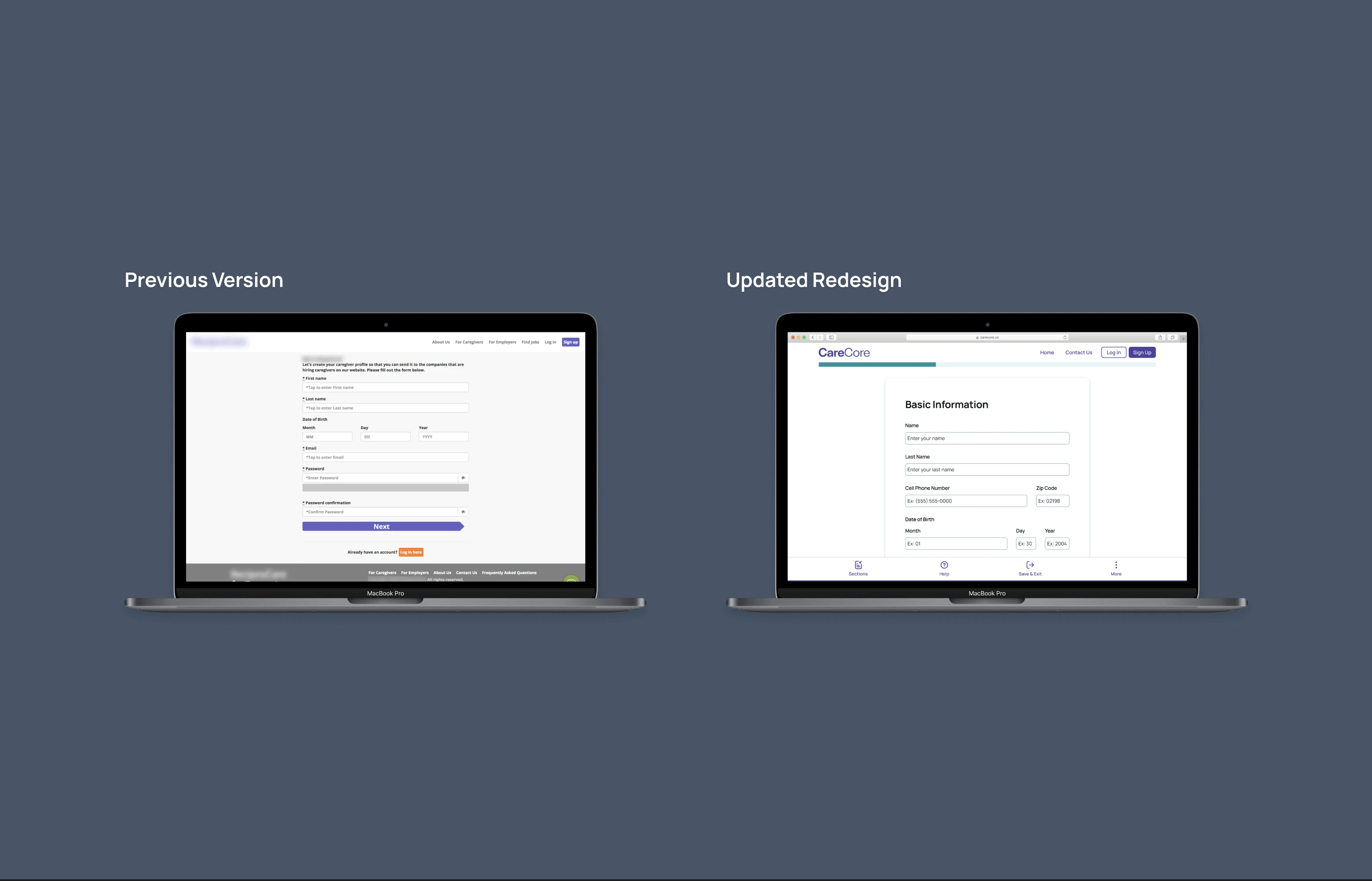 This prototype shows how the public website and caregiver onboarding were rebuilt as a cohesive system to establish trust in a HIPAA-regulated marketplace. The work addressed foundational gaps in UI consistency and accessibility while aligning structure, language, and pacing across surfaces, ensuring expectations set on the website carried through onboarding.
